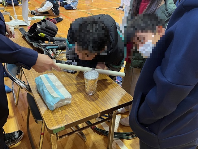 ひと通り体験を終え、最後に電気を感じてもらう実験を行いました。